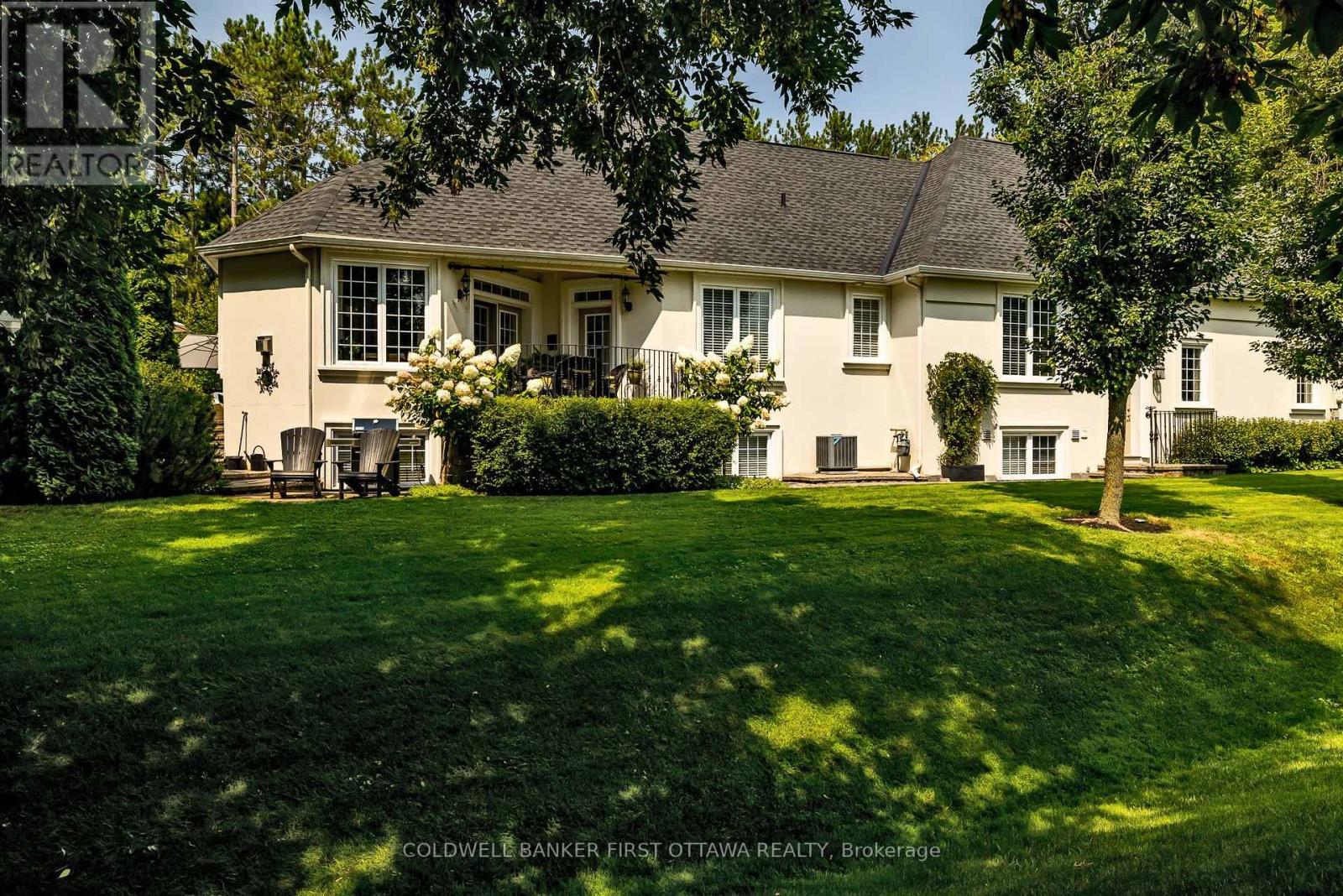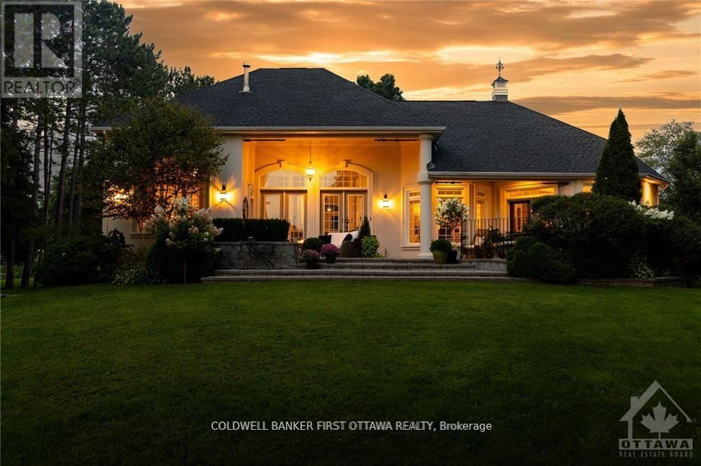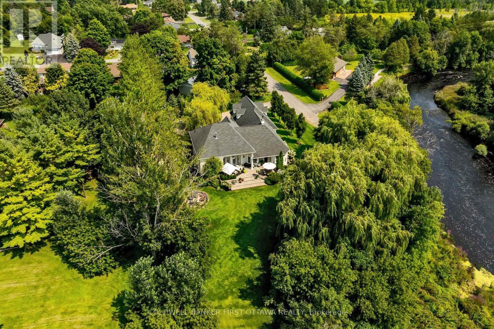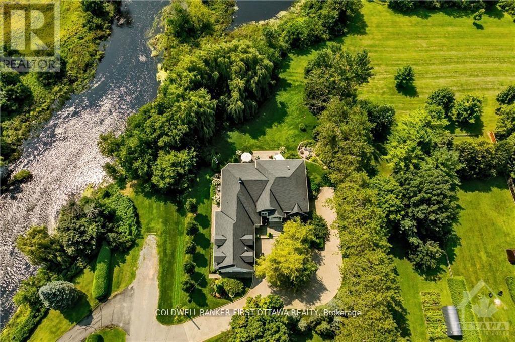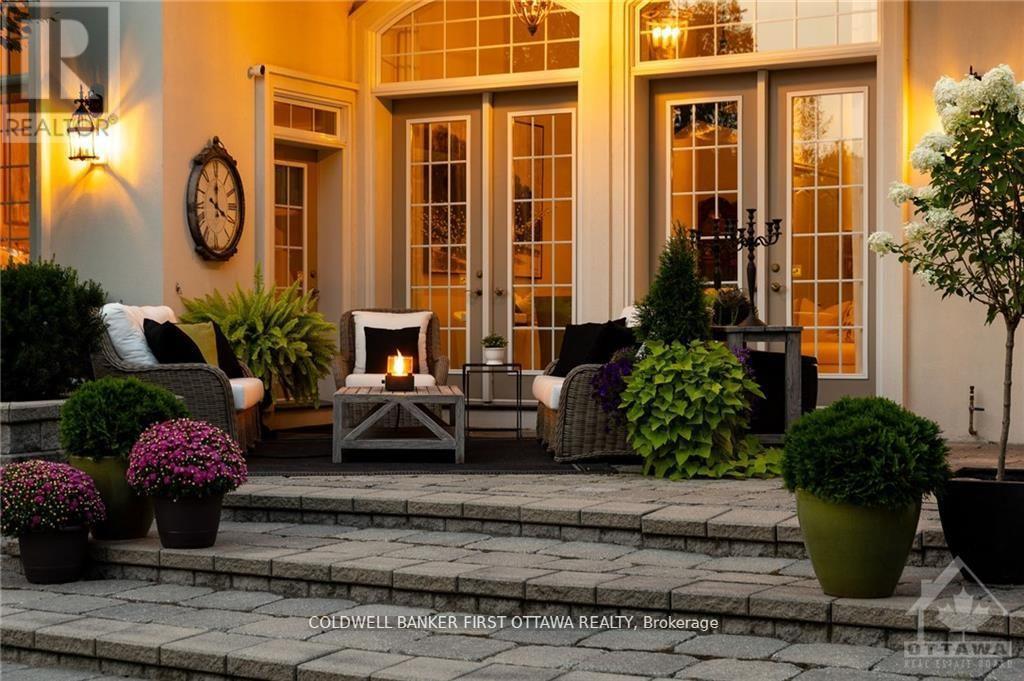 Experience unparalleled luxury in this meticulously designed home, just 15 minutes from Kanata, Stittsville and Manoticks central amenities. Nestled on a mature lot backing onto serene parkland and a gentle river, this estate boasts a picturesque courtyard with a sweeping driveway and weeping willow. Entertain effortlessly in the expansive great room with coffered ceilings and stunning hardwood, flowing seamlessly to multiple terraces. The sun-filled chef's kitchen overlooks a cozy family room and breakfast nook. Retreat to the primary suite with terrace access, a reading corner, custom fireplace, spa-like ensuite, and walk-in closet. The cohesive design extends from the upper-level guest suite with a coffee station to the lower level, featuring a games room, guest suite, fitness area, and workshop. Custom ICF construction, natural stone and stucco exterior, and top-of-the-line finishes make this home a rare find. (id:2469)