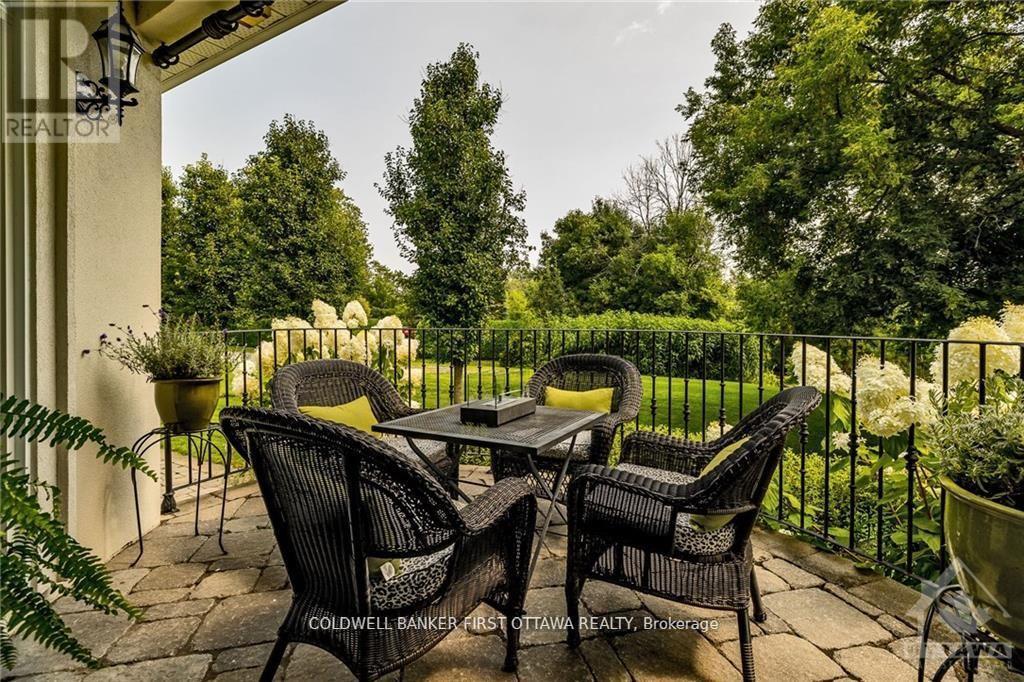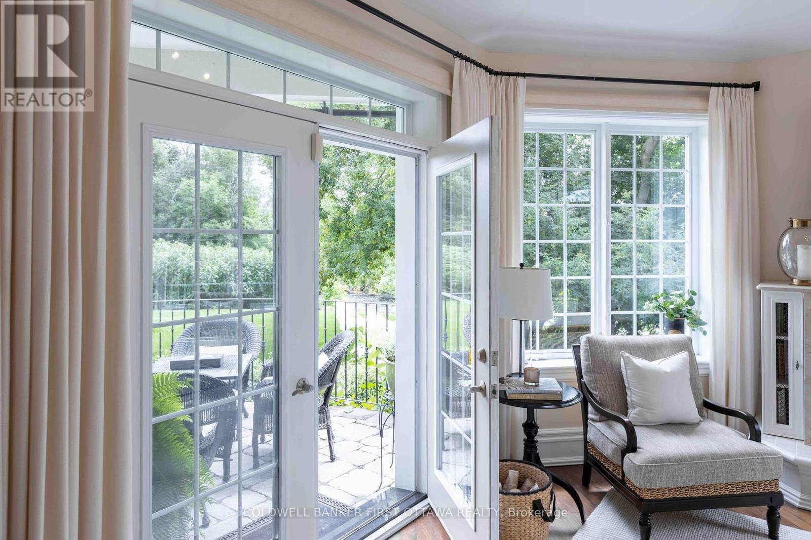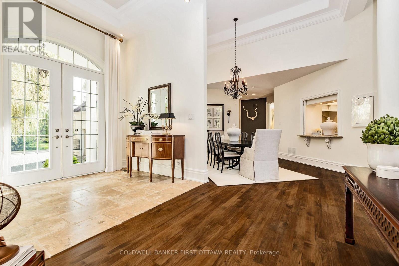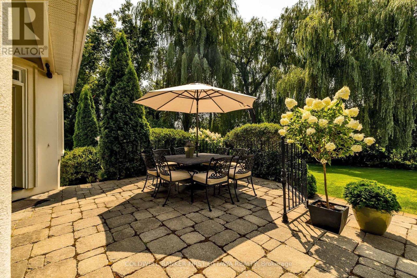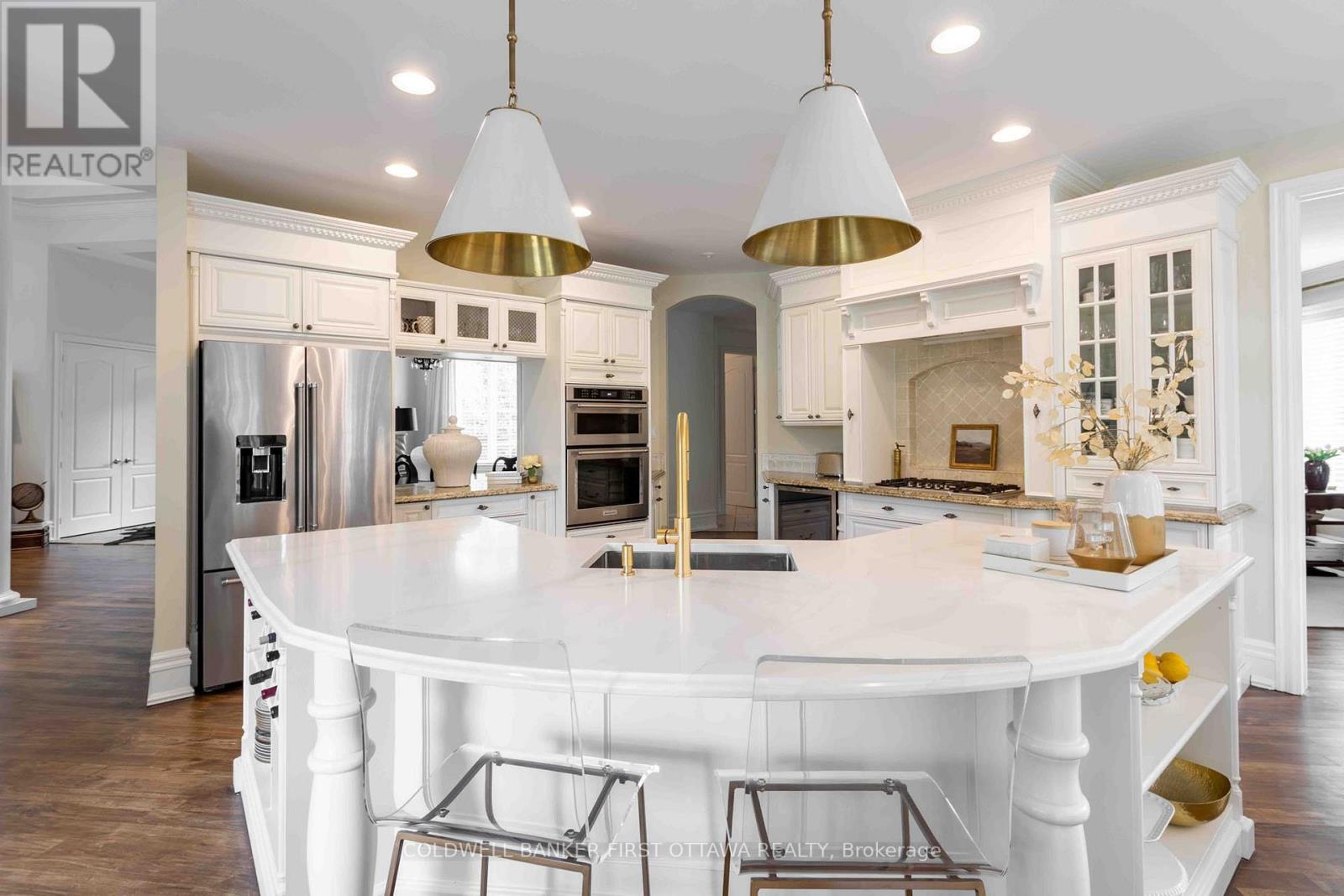 Experience unparalleled luxury in this meticulously designed home, just 15 minutes from Kanata, Stittsville and Manoticks central amenities. Nestled on a mature lot backing onto serene parkland and a gentle river, this estate boasts a picturesque courtyard with a sweeping driveway and weeping willow. Entertain effortlessly in the expansive great room with coffered ceilings and stunning hardwood, flowing seamlessly to multiple terraces. The sun-filled chef's kitchen overlooks a cozy family room and breakfast nook. Retreat to the primary suite with terrace access, a reading corner, custom fireplace, spa-like ensuite, and walk-in closet. The cohesive design extends from the upper-level guest suite with a coffee station to the lower level, featuring a games room, guest suite, fitness area, and workshop. Custom ICF construction, natural stone and stucco exterior, and top-of-the-line finishes make this home a rare find. (id:2469)