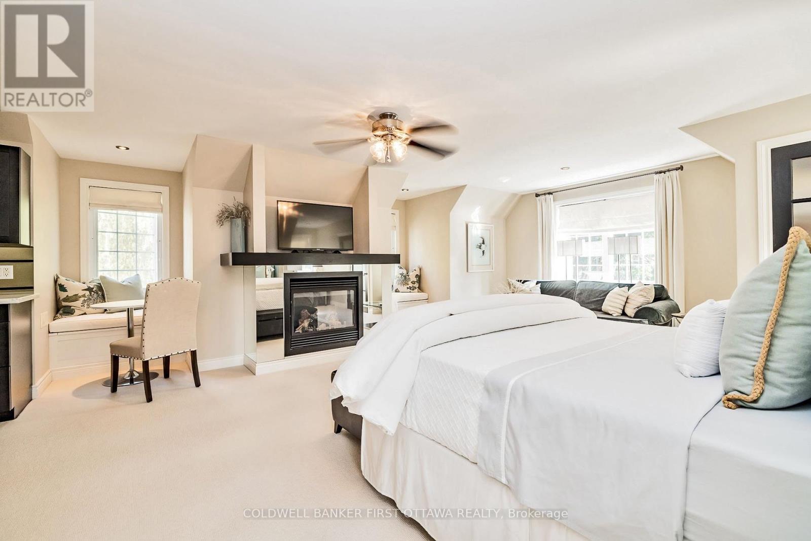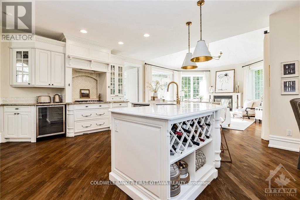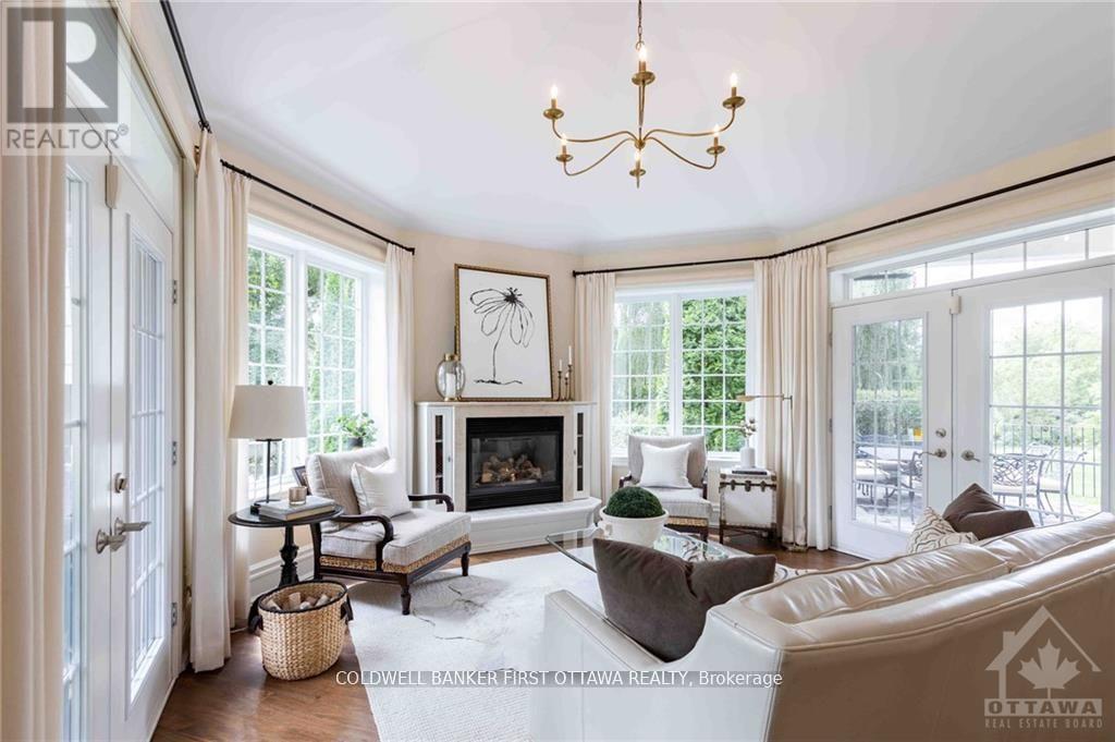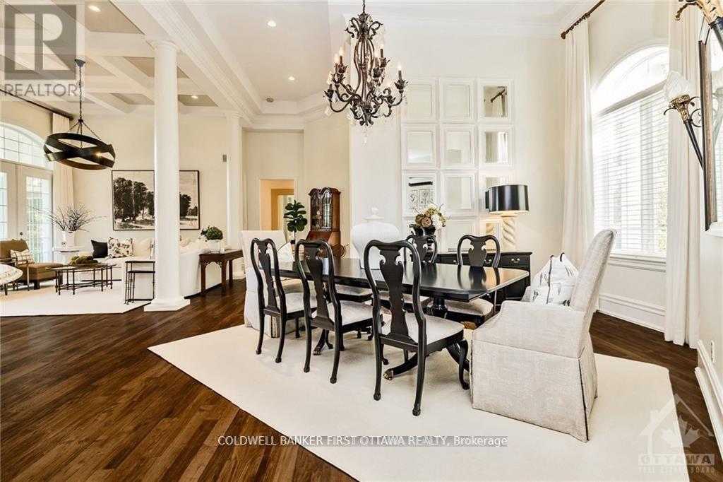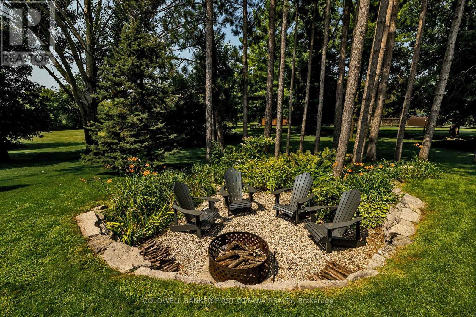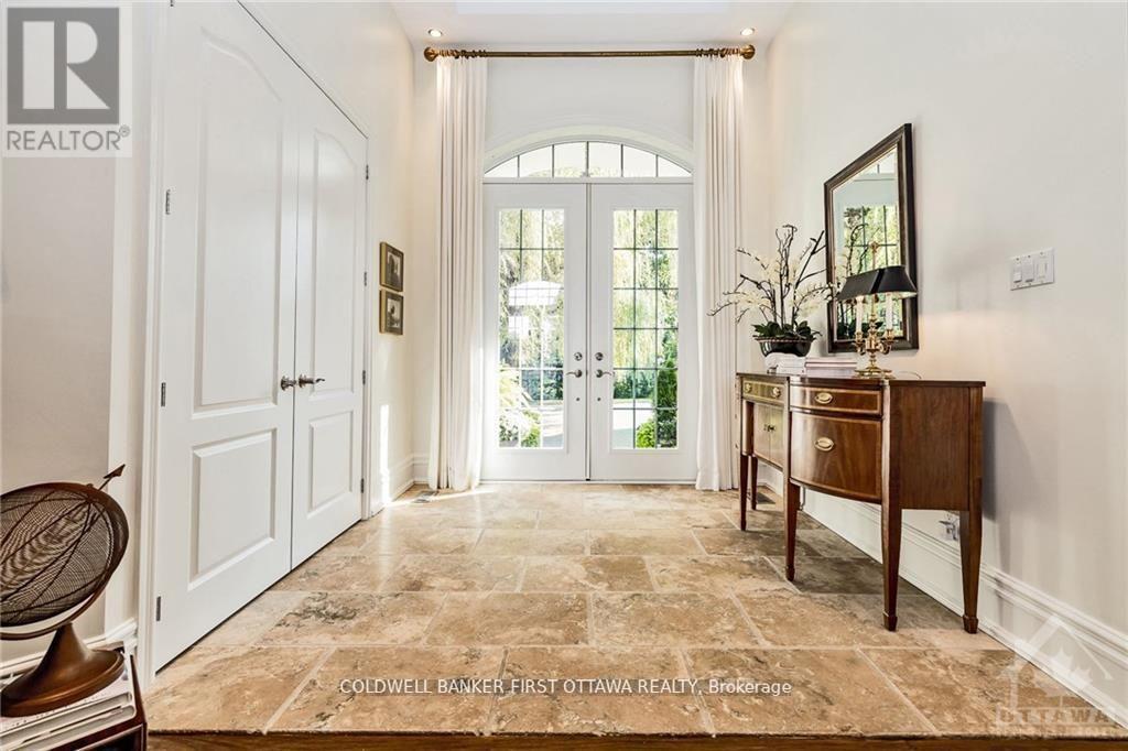 Experience unparalleled luxury in this meticulously designed home, just 15 minutes from Kanata, Stittsville and Manoticks central amenities. Nestled on a mature lot backing onto serene parkland and a gentle river, this estate boasts a picturesque courtyard with a sweeping driveway and weeping willow. Entertain effortlessly in the expansive great room with coffered ceilings and stunning hardwood, flowing seamlessly to multiple terraces. The sun-filled chef's kitchen overlooks a cozy family room and breakfast nook. Retreat to the primary suite with terrace access, a reading corner, custom fireplace, spa-like ensuite, and walk-in closet. The cohesive design extends from the upper-level guest suite with a coffee station to the lower level, featuring a games room, guest suite, fitness area, and workshop. Custom ICF construction, natural stone and stucco exterior, and top-of-the-line finishes make this home a rare find. (id:2469)