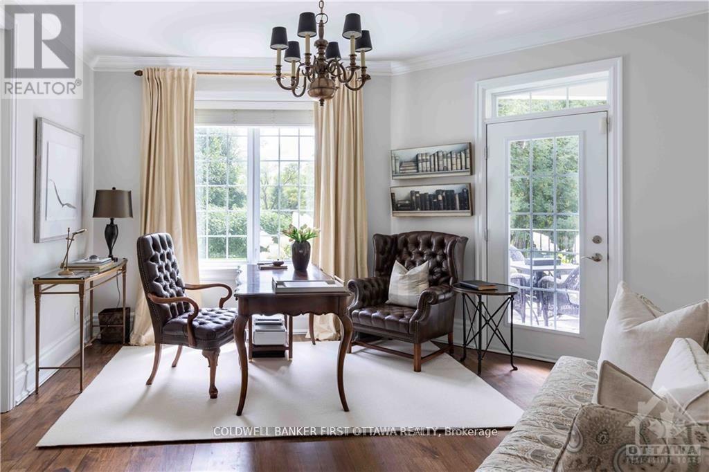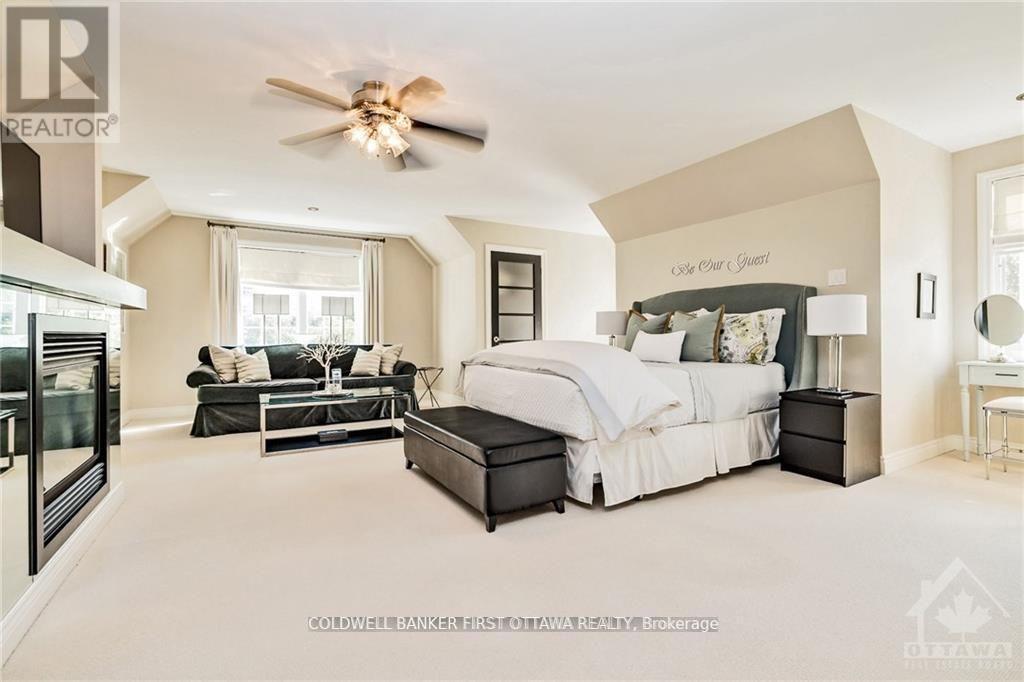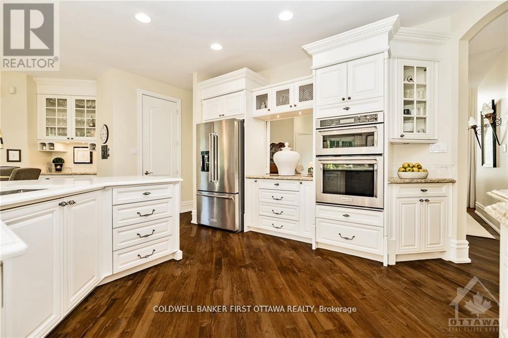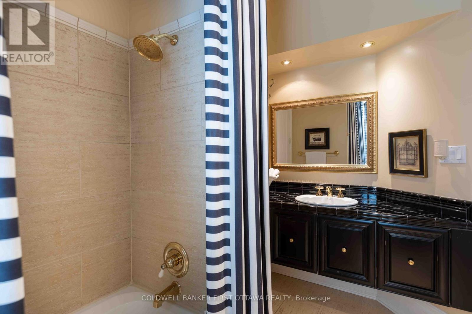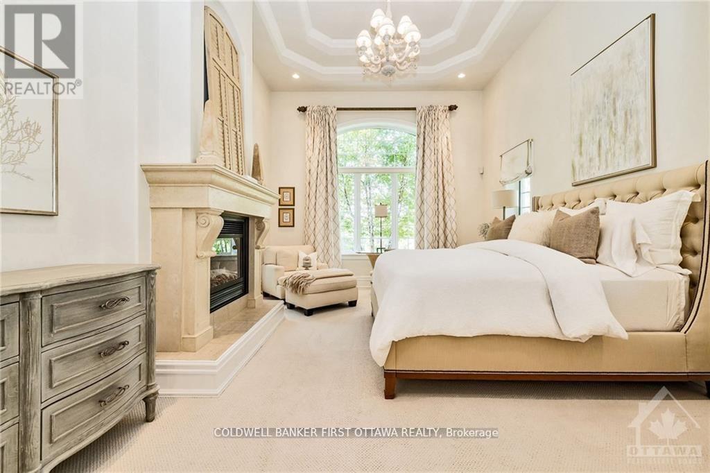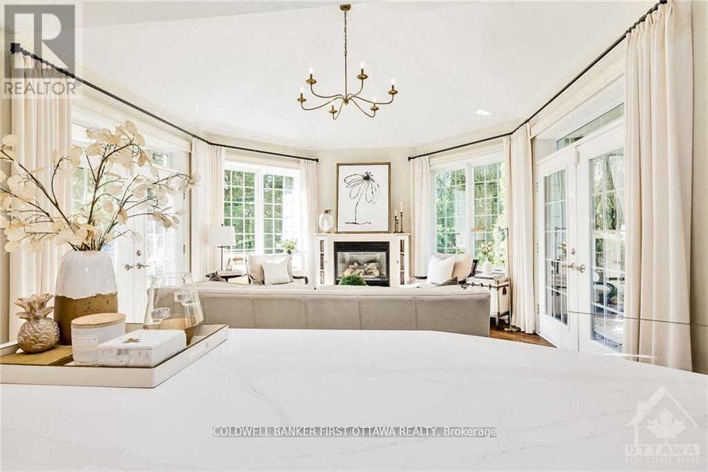 Experience unparalleled luxury in this meticulously designed home, just 15 minutes from Kanata, Stittsville and Manoticks central amenities. Nestled on a mature lot backing onto serene parkland and a gentle river, this estate boasts a picturesque courtyard with a sweeping driveway and weeping willow. Entertain effortlessly in the expansive great room with coffered ceilings and stunning hardwood, flowing seamlessly to multiple terraces. The sun-filled chef's kitchen overlooks a cozy family room and breakfast nook. Retreat to the primary suite with terrace access, a reading corner, custom fireplace, spa-like ensuite, and walk-in closet. The cohesive design extends from the upper-level guest suite with a coffee station to the lower level, featuring a games room, guest suite, fitness area, and workshop. Custom ICF construction, natural stone and stucco exterior, and top-of-the-line finishes make this home a rare find. (id:2469)