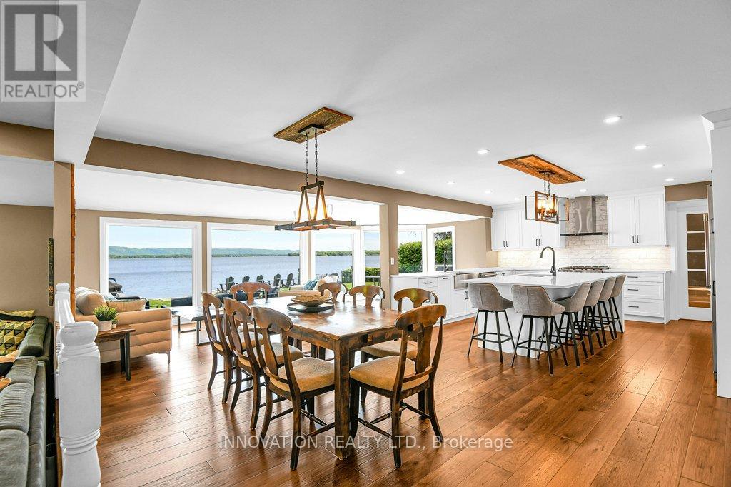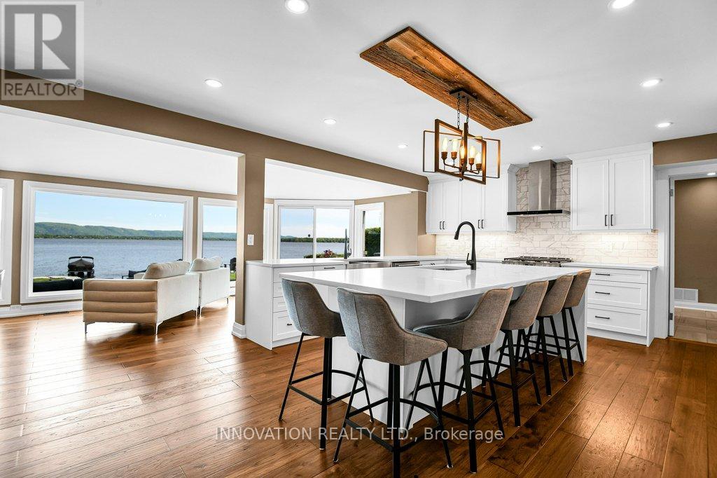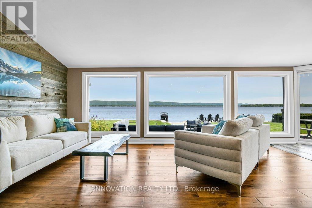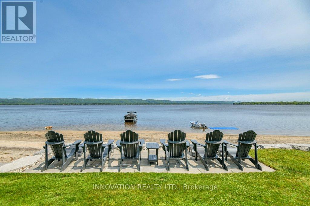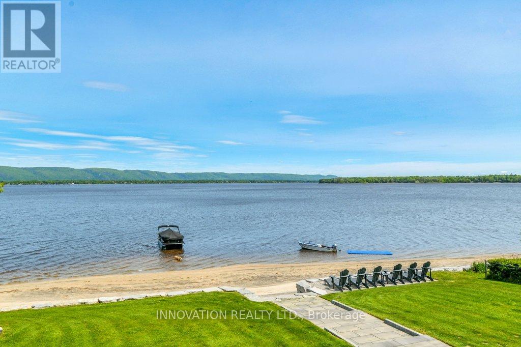 Stunning Cape Cod style luxury beach house! Now this is a lifestyle beyond compare. Every detail of this property has been updated to suit the most discerning buyer. The scale of this home has each living area spacious with no compromises. The open concept designer Kitchen, Dining area, Family room and Living room are entertaining size yet feel so comfortable and welcoming. Huge windows in all primary rooms capture the ever changing views of the bay, the river and the Gatineau Hills. Naturally sourced hickory floors, aged barnboard accent wall, ancient timber mantelpiece are all a nod to the rustic beauty of this beach front property. Sit by the bonfire and enjoy the manicured lawn and gardens with friends and family. The four bedroom main house is perfect for family and for overnight guests. Primary Suite has a sumptuous Ensuite bath with huge shower and a walk in closet set up for any city girl. The suite with its own private washroom, Living/Dining and Kitchen plus bedroom area have many possibilities: nanny suite, in-law suite, guest rental, private guests.Elevated lawn leads to a natural retaining wall and stone steps to the beach. This is a truly unique opportunity on 100 feet of privately owned beach.Year round activities include boating, kayaking, fishing, skating, cross country skiing, ice fishing, snowmobiling and more. This is The Art of Living. (id:2469)
