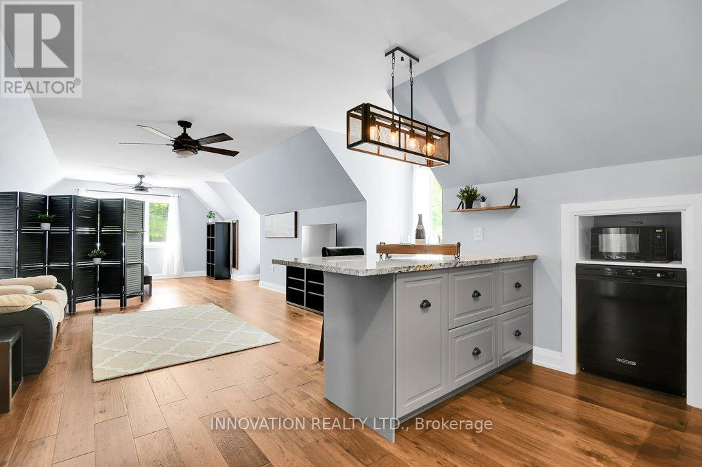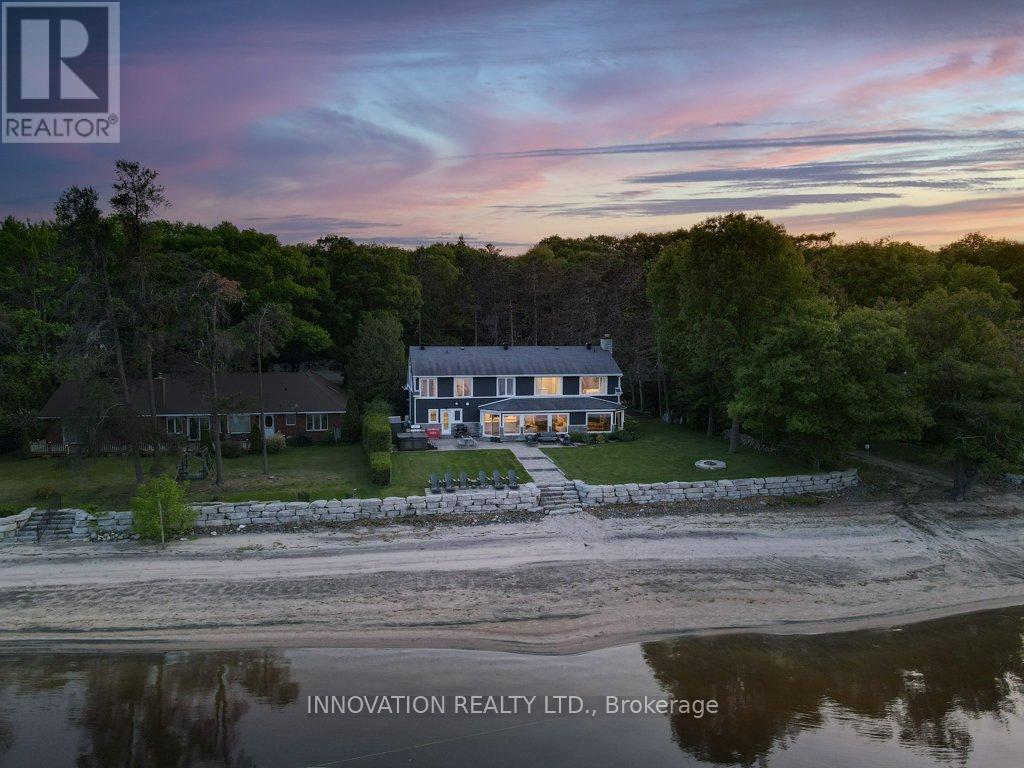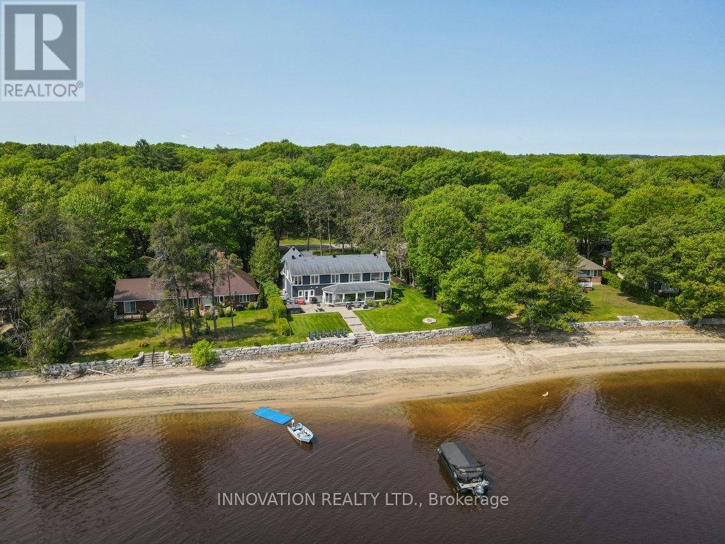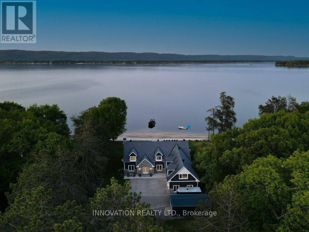 Stunning Cape Cod style luxury beach house! Now this is a lifestyle beyond compare. Every detail of this property has been updated to suit the most discerning buyer. The scale of this home has each living area spacious with no compromises. The open concept designer Kitchen, Dining area, Family room and Living room are entertaining size yet feel so comfortable and welcoming. Huge windows in all primary rooms capture the ever changing views of the bay, the river and the Gatineau Hills. Naturally sourced hickory floors, aged barnboard accent wall, ancient timber mantelpiece are all a nod to the rustic beauty of this beach front property. Sit by the bonfire and enjoy the manicured lawn and gardens with friends and family. The four bedroom main house is perfect for family and for overnight guests. Primary Suite has a sumptuous Ensuite bath with huge shower and a walk in closet set up for any city girl. The suite with its own private washroom, Living/Dining and Kitchen plus bedroom area have many possibilities: nanny suite, in-law suite, guest rental, private guests.Elevated lawn leads to a natural retaining wall and stone steps to the beach. This is a truly unique opportunity on 100 feet of privately owned beach.Year round activities include boating, kayaking, fishing, skating, cross country skiing, ice fishing, snowmobiling and more. This is The Art of Living. (id:2469)