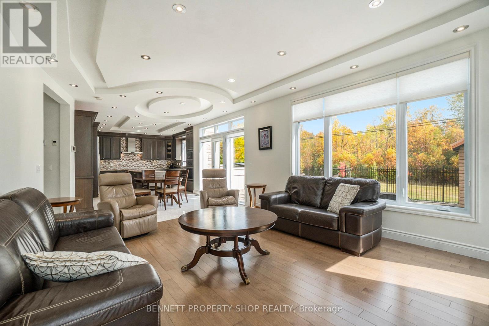 Nestled on one of Alta Vista's most prestigious streets, this custom-built 5 bed, 5 bath luxury home (including 2 ensuites) offers refined elegance and thoughtful functionality for the most discerning buyer. Backing onto tranquil green space with no rear neighbours, enjoy unmatched privacy and serenity in a home that blends sophisticated design with family-friendly living. Step through grand arched doors into a spacious formal living room with gleaming hardwood floors and timeless charm. The extended dining room is ideal for entertaining, with space for large gatherings or intimate family dinners. At the heart of the home is a gourmet kitchen designed for both style and function, boasting top-tier appliances, custom cabinetry, expansive counters, and a layout perfect for hosting. East-facing windows flood the main level with natural light and offer serene views of the beautifully landscaped backyard, a private oasis with lush gardens and elegant hardscaping. A stunning spiral staircase leads to 4 generous bedrooms upstairs. The primary suite is a true retreat, complete with an oversized walk-in closet and a spa-like 5-piece ensuite. Each bedroom offers ample closet space and access to well-appointed bathrooms. The lower level adds incredible versatility with a wet bar, large den ideal for a home theatre or office, gym space, full bathroom, and an additional bedroom - perfect for guests or extended family. Located minutes from top hospitals, Bank Street, Highway 417, parks, and walking paths, this home provides ultimate convenience. With architectural elegance, practical luxury, and thoughtful detail throughout, this Alta Vista gem offers a rare opportunity for refined living in one of Ottawa's most coveted neighbourhoods. Some photos are digitally enhanced. (id:2469)
