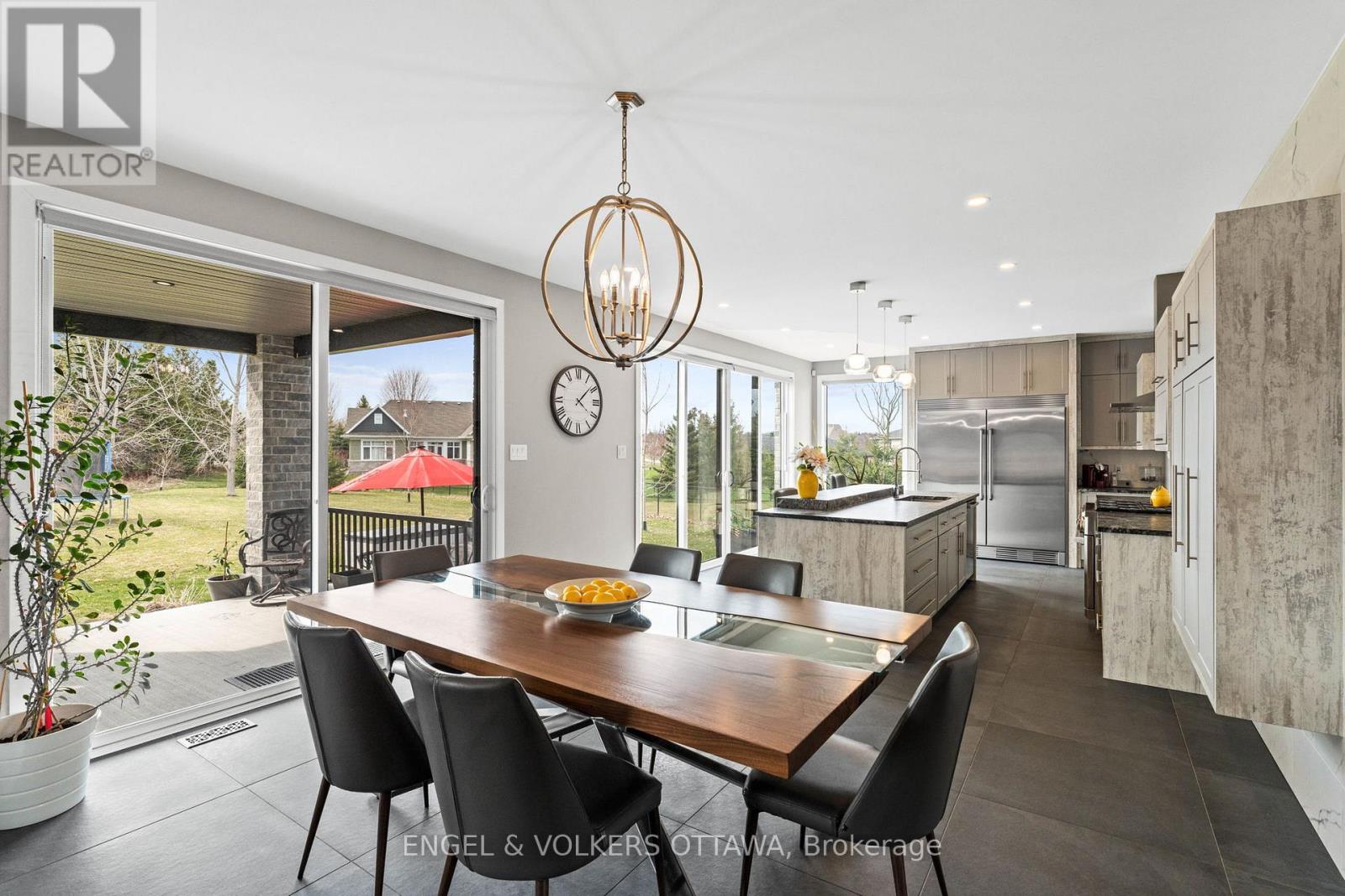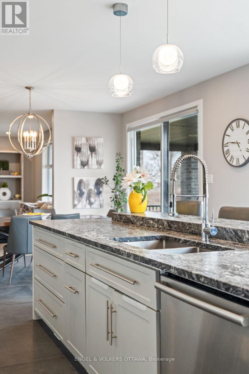 Exquisite custom-built home combines timeless elegance with modern luxury on a cul du sac in the heart of Manotick. The gourmet kitchen features custom cabinetry, leathered granite countertops, stainless steel appliances, a walk-in pantry, and a coffee bar, perfect for both everyday living and entertaining. A spacious formal dining room and dual patio doors fill the main living area with natural light, creating a bright and welcoming atmosphere. The luxurious primary suite offers a custom walk-in closet and a spa-inspired 7pc ensuite. One secondary bedroom includes a private ensuite, while a Jack-and-Jill bathroom connects two additional bedrooms. The fully finished lower level is ideal for entertaining, with dedicated spaces for a bar, theatre, exercise, a guest bedroom, full bath, and cold storage. Step outside to a beautifully landscaped backyard featuring a covered lanai with built-in speakers, a fire pit, and an interlock patio complete with granite counter top, gas BBQ, and built-in pizza oven. Additional highlights include a full irrigation system, Control4 smart home system, central vac, and surround sound in the theatre and family rooms. This home is the ultimate entertainers dream inside and out. Don't miss out on the opportunity to make it yours! (id:2469)